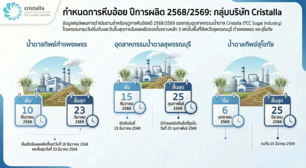 ประกาศสิ้นสุดฤดูกาลหีบอ้อย ปีการผลิต 2568/2569 อย่างเป็นทางการ – กลุ่มบริษัท Cristalla ขอขอบคุณพี่น้องชาวไร่อ้อยทุกท่าน